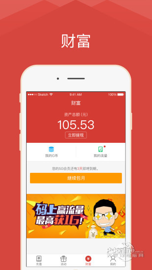 5G流量平台,是一款方便用户购买三大运营商(中国移动、中国联通、中国电信)手机流量的移动APP,在5G你不但可以购买流量,还可以获得会员权限,每日领取流量包,流量包可兑换手机流量。