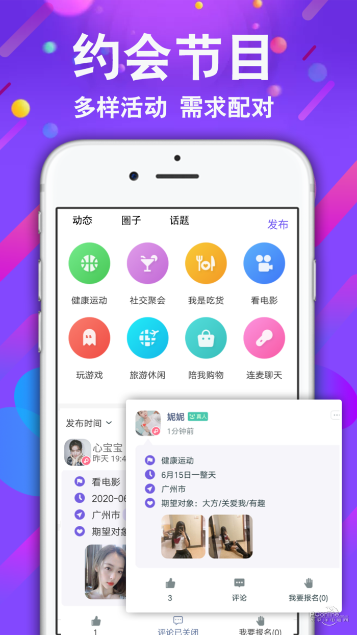 一个真实靠谱的社交软件,所有的用户经过实名认证,让交友少些套路,可以约上志同道合的朋友看电影、唱歌、运动等.
