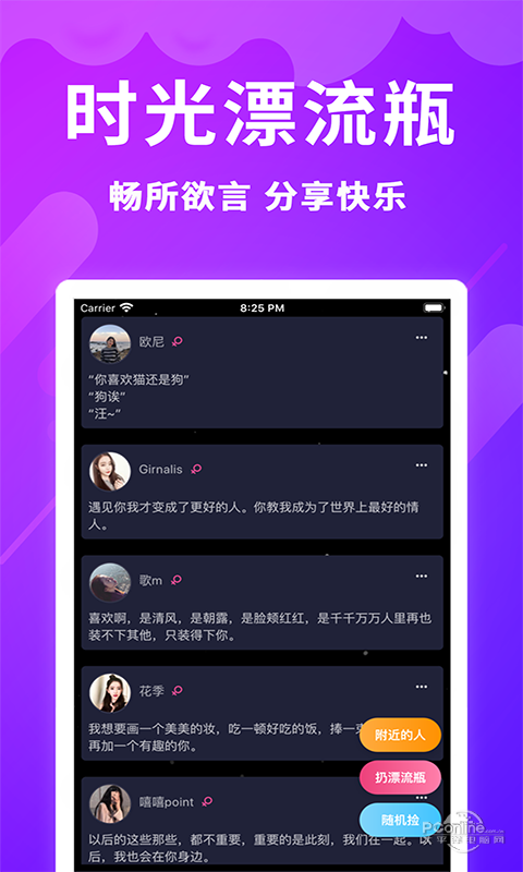 时光漂流瓶是一款超人气多人实时语音交友情侣“处cp”软件,“漂流瓶”一起玩“cp”吧.