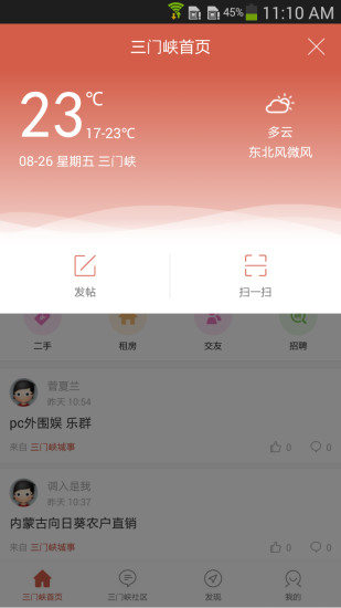 掌上三门峡论坛是三门峡市人气活跃的网络社区,致力于为三门峡市民提供吃、喝、玩、乐、购、住、行一站式分享和交流的社区平台,关注百姓生活,反映民心民意! 是三门峡市民的网上精神家园,在这里可以免费注册、发帖回帖、参与活动、互动投票、留言交友等,还能随时随地尽览本地全新的商家打折优惠信息。