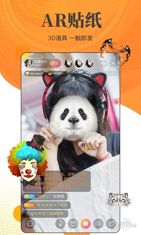 提供各种酷炫立体2D、3D贴脸道具,直播不再单调、乏味.