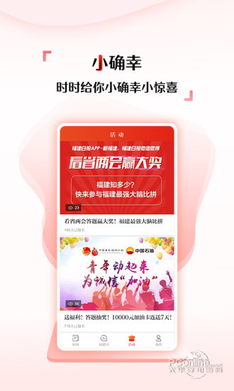 新福建是移动端的福建日报,是福建权威全媒体聚合发布平台。【新闻24小时】围绕中心、服务大局,立足八闽、胸怀世界,专注时事、关切民生,传播政策、解读事件, 24小时不间断更新,一端网罗权威、新鲜的新闻资讯,速递到手机屏。【荟萃福建号】订阅八闽政务信息、对接公共服务平台、汇聚有影响力的地方媒体和行业媒体,不只是出品有高度、有深度、有温度的新闻,还提供一站式、个性化的信息订制服务。【直播福建】上线全新移动直播平台,带你亲临现场,用酷炫有趣的形式,打造沉浸式体验,让新闻可听可视、可触可感、可交互更好玩。【影像福建】开设专门视频频道,集合发布闽视频、桔视频等优质原创产品,用视觉语言鲜活影像,多维度真实记录、生动呈现时代风云八闽视界。【精彩活动】新增活动模块,积分、奖品、趣味小游戏,优惠不断、惊喜连连,精彩活动时时给你小确幸。