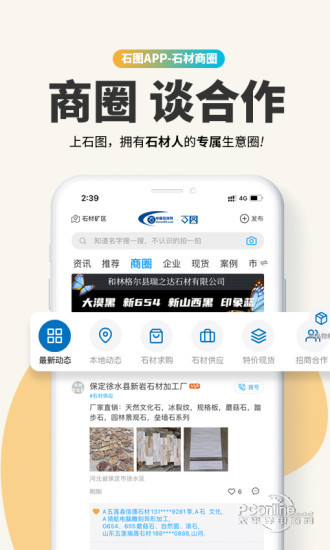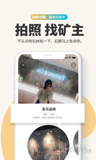 中国石材网(stone365)倾力奉献,不认识的石头拍一下,直溯源头供应商! ————-行业黑科技:拍照识图————- 覆盖全:大理石、花岗岩、砂岩、奢石、玉石,只要板材花纹清晰都能识别;识别快:专利技术,平均识别时间仅需0.98秒,还能推荐可替代产品;技术牛:AI识别石材主体,无需裁切直拍直出,自主学习不断成长; ————-行业数据库:中国矿山产区图————- 矿山:国内500个石材矿山源头产区,50000+以上矿山源头供应商;市场:近300家全国石材市场详析,超过100000+优质石材企业; ————-石材人的专属圈子:石材商圈————- 各色信息:供求招商,新品合作,现货处理,应有尽有;地区筛选:发现身边人,身边事,身边的生意和商机;在线聊天:志同道合,即时沟通,打电话谈生意,聊聊天交朋友。 ————-我们懂你:贴心实用功能————- 工程案例:这种石材的装饰效果怎样?海量工程案例图片供您参考;运费查询:附近供应商价格太贵?帮你算下运费,看看怎样采购才划算;采购中心:想要大量供应商来报价?一键发布采购,站内即时推送。