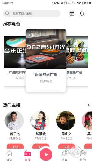 花城FM APP 包括广州电台四套直播节目:FM96.2新闻资讯、FM102.7汽车音乐、FM106.1交通电台、FM88.0都市生活;热门电台主持人发布PGC音频点播节目收听;潮流至IN的话题内容、热点推文和动态发布;动态下评论及交流。