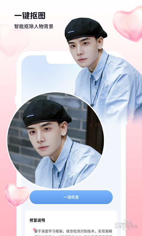 悦颜美图修图是一款由国内专业技术团队技术支持,提供图片美化、图片修复、图片效果、一键抠图等功能的强大PS修图软件.满足您日常生活所需要的图片处理需求,使用便捷,一站式专属完成图片美拍美化.快用悦颜美图修图Get潮流有趣图片视频玩法,化身为美图大师.