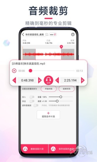 音频裁剪大师是一款支持各种音频提取、裁剪、拼接、变速、混音、降噪、格式转换、铃声制作等功能的音频软件。 特色功能:【音频裁剪】从本地音乐库导入音频,自定义裁剪范围,可以对各类型的音频剪切制作【音频/伴奏提取】从抖音、快手等各类短视频中,提取自己喜爱的音频,还能对音频中的伴奏进行提取【音频拼接/合并】轻松一键实现多首音乐歌曲合并,剪辑合成串烧音乐随时high起来【音频混合】将不同的音乐混淆合成,背景音乐和主旋律可调节音量大小,大师专业级别的音频混合剪辑制作完成【音频降噪】消除音频波形图中比较尖锐的部分,使声音更平滑,还能消除录音中的杂音【高清录音】内置音频降噪还原真实的高清录音,亦可以将自己的录音混合音乐制作中,自己也可以做DJ音乐制作人【格式转换】支持各种主流音频格式的转换,包括MP3、AAC、WMA、FLAC、M4A等【铃声制作】手机铃声制作编辑,创作自己喜爱的铃声 无论专业与否,音频剪辑音乐剪辑都能帮你轻松玩转音乐铃声剪辑世界,这里有关于声音的一切!音乐触及灵魂,你创作的才动听!联系我们:moreapps.service@gmail.com