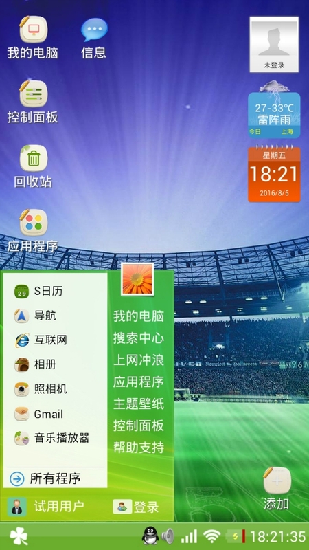 里约奥运桌面支持多主题切换,可以随心所欲地对您的安卓设备(手机、平板)进行美化,让你的手机可以体验电脑操作习惯,里约奥运桌面Windows版完美模拟了Windows7、Vista和XP风格界面,还提供了丰富的主题库、壁纸库、字体库,可以轻松地将您的手机装扮得更漂亮。里约奥运桌面作为免费软件自由发布,任何人都可以无限制使用本软件。