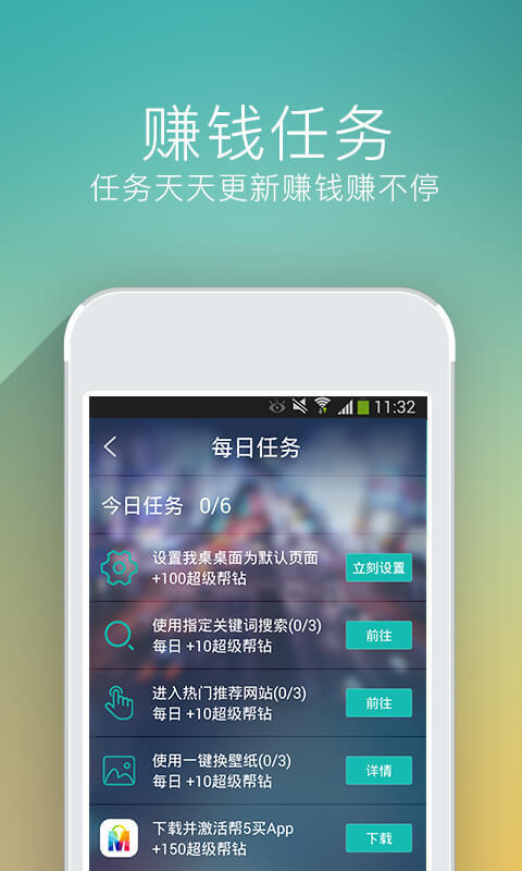 我桌不仅是一个桌面美化应用,您还能通过它赚钱——超级帮钻。您可以用超级帮钻在主流电商抵扣现金,无任何使用限制。赶快来试试吧!