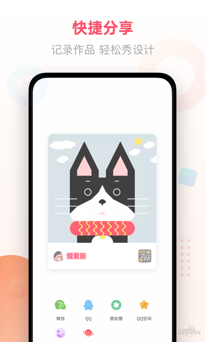 一键分享作品至朋友圈、QQ空间或其他社交平台,与朋友家人一起欣赏画作,展示艺术天赋,满足你的创作成就感.