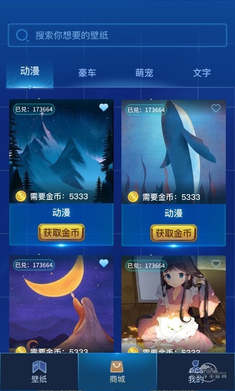 在本应用中,你可以搜索并使用喜欢的图片设置为壁纸.