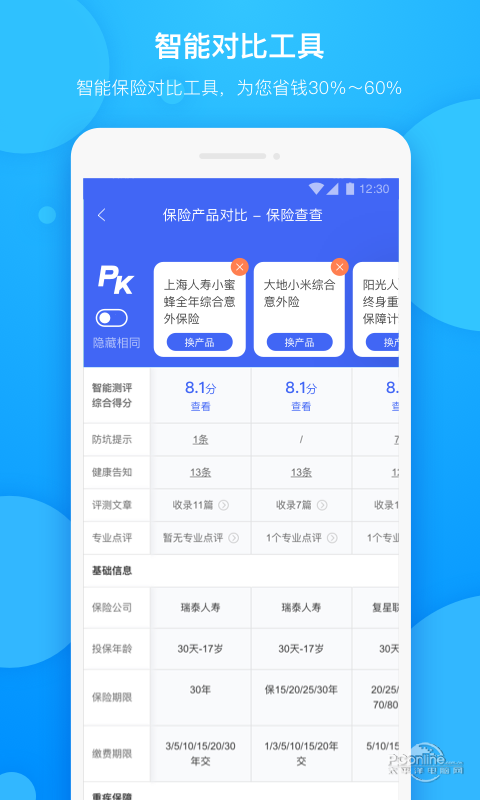 「1」查产品—产品测评、专业点评、用户口碑尽收眼底,智能保险对比工具,为您省钱30%~60%