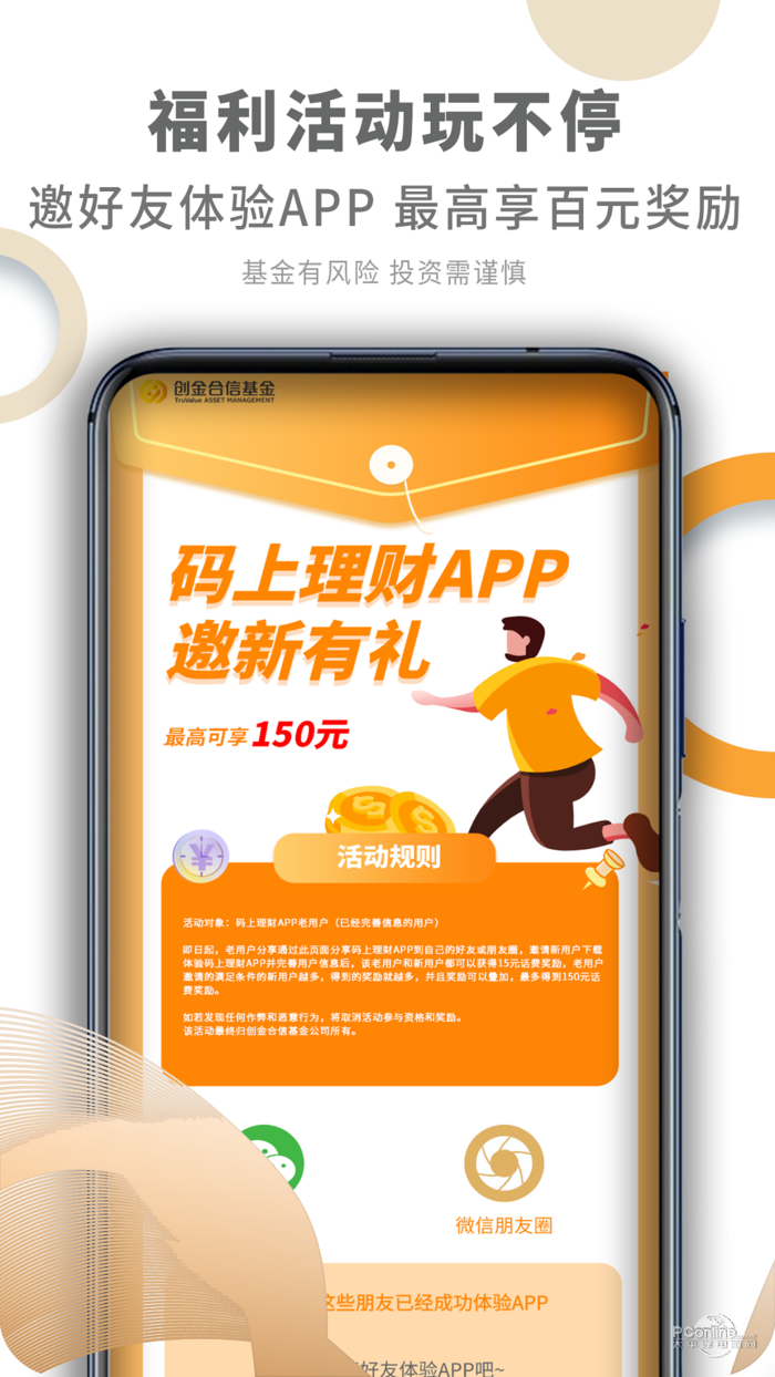 码上理财APP是创金合信基金官方直销平台 ,应用内可享零钱包0折购基.创金合信基金成立于2014年7月,旗下产品覆盖主动权益、债券、货币、海外投资、被动投资等不同类别.现体验码上理财APP,一起创享财富 合赢未来.