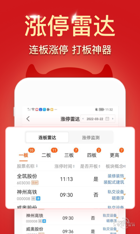 【√】涨停雷达:连板雷达、涨停监测让你对股票涨停信息一目了然,是涨停板股复盘的的得力助手.