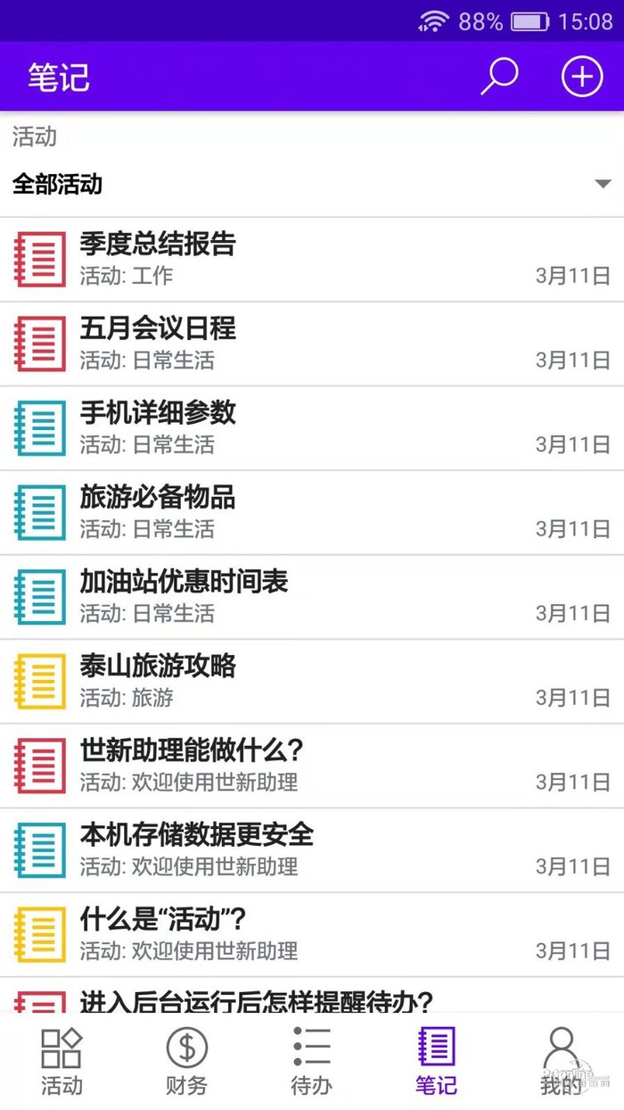 世新助理是一个适合安卓系统使用的个人助理APP,世新助理通过“活动”将“待办”、“笔记”、“财务(收入和支出)”联系起来.您可以用世新助理来记账,记笔记,管理待办.