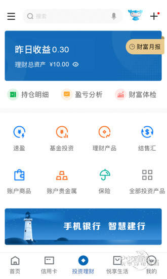 3、建设银行app专为手机银行客户打造的移动金融服务平台,在具备转账汇款、缴费支付、投资理财、账户管理、信用卡、快贷、手机充值、网点地图等常用功能的同时,建设银行还向广大客户提供影票在线、机票预订、存贷款计算器等便捷生活服务。建设银行app下载手机银行炫酷、流畅的界面设计,新颖实用的功能让您充分享受移动生活的乐趣,是时刻陪伴在您身边的理财生活好帮手。