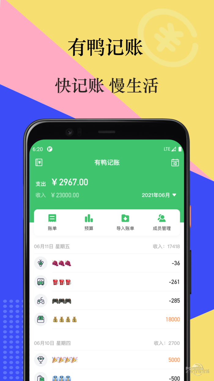 - 账单导入:支持微信账单、支付宝账单快速导入,便捷的懒人记账