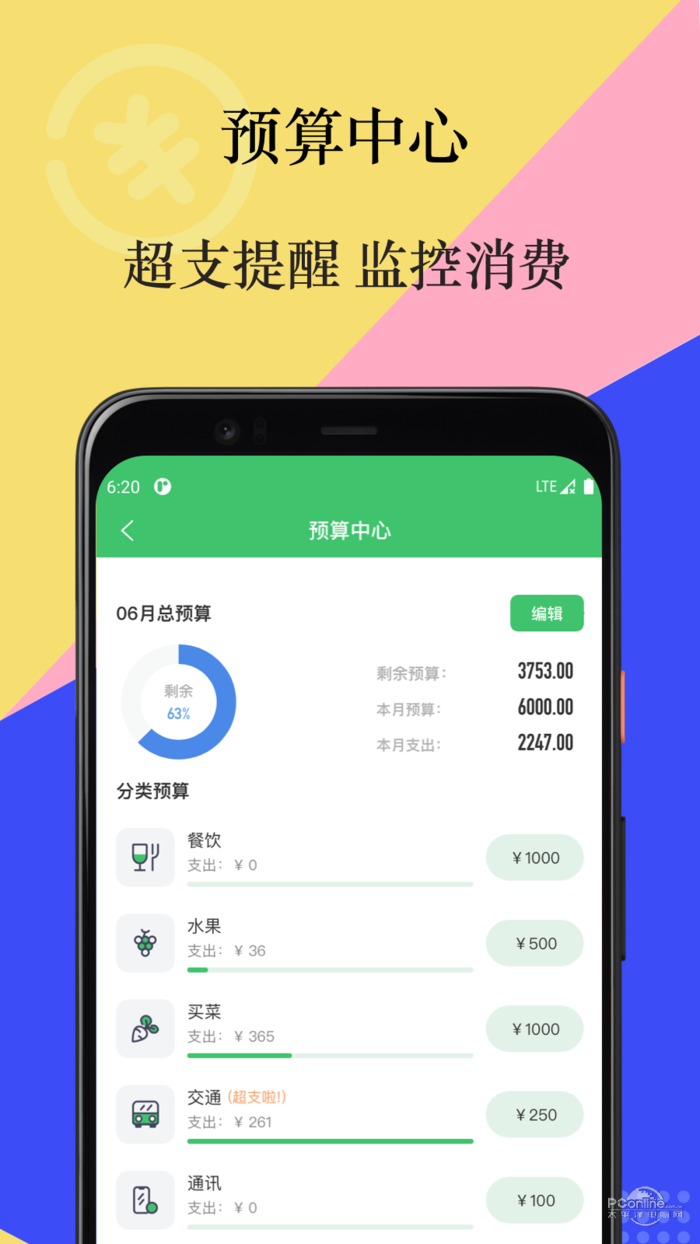 - 预算管理:设置月度预算,超支提醒,监控消费