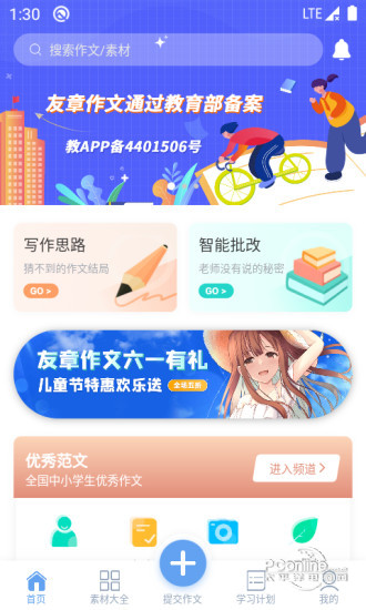 更快构思,更快选材,更快作文结构安排。 精致点评,共情共鸣,激发学生写作兴趣。 下载“友章作文”,从此不再绞尽脑汁凑字数。 【分类素材】 四十万优秀范文、十万精选佳句、万篇神话寓言哲理故事、诗词古文、精彩开头结尾,等待你来发现。【写作引导】 输入关键词可以快速获取作文模板,轻松打开思路。实在无法下笔时,试试自动组稿,看看AI是怎么写作文的。 【拍照批改】 写完作文想知道能得多少分?打开相机拍一拍,从单个词汇到整个语句,从文章内容到表达能力,全方位打分点评。 【范文讲解】 不仅仅是阅读,还能学习拟题、巩固易混淆知识点、分析写作技巧、延展写作思路、开放式评论研讨,让你汲取更多有益的养分。 【知识拓展】 精彩的词语搭配、优美的语句修饰、古往今来的佳句引用,助你出口成章、舌灿莲花。 【提升建议】 数百种写作方法、运笔技巧以及应试指导,使你术法结合,写出高分作文。 【智能问答】 随时随地想问就问、想查就查,每个知识点还提供出处、解释、赏析等,让你畅游在知识的海洋。 【学习计划】 提供历届考试作文真题、同步作文讲解与训练,还能跟小伙伴一起挑战闯关,想不提分都难。