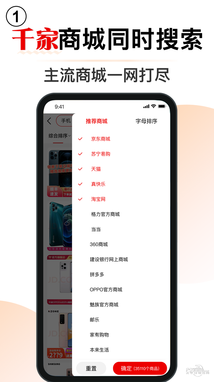 对同一商品型号进行智能合并,众多商城渠道价格一目了然,轻松对比
