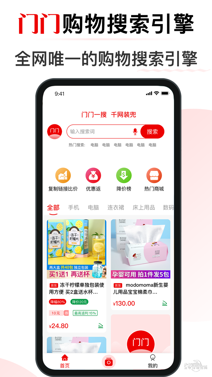 门门购物提供便捷高效的智能检索,可以快速检索优质商品、特价商品,同时提供非常全面的对比,价格透明,渠道清晰,给消费者带来高性价比的购物体验.