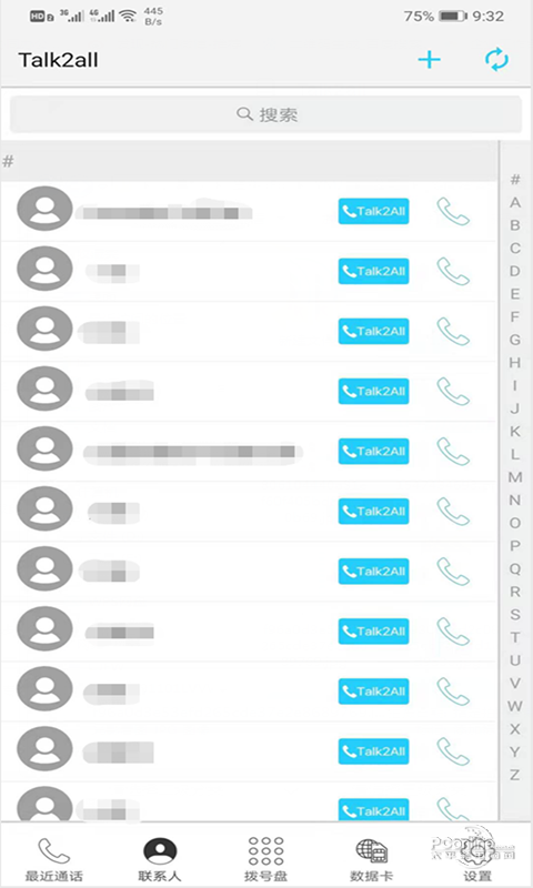 Talk2all利用手机当中的网络进行移动通话,对于跨国甚至是跨洋电话来说非常的便宜且方便,出门在外的时候不用再担心漫游所产生的费用,只需要找个有WIFI的地方就能进行通话,感兴趣的话就快来下载这款Talk2all吧.