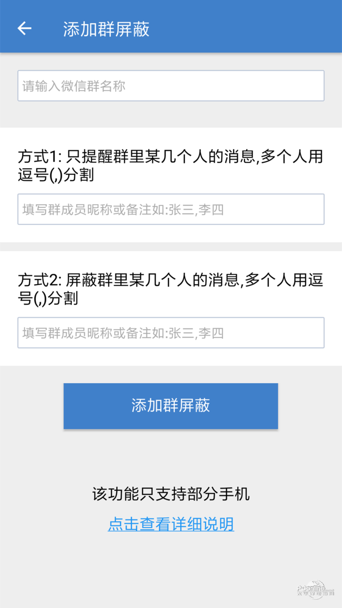 群屏蔽功能,可以屏蔽群里某些人的提醒,也可以只提醒群里某些人的消息
