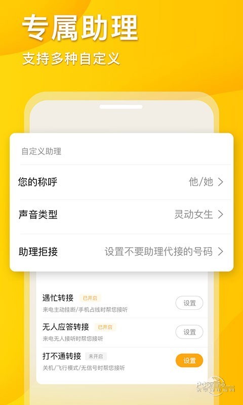 韭黄电话助理是一款电话AI智能助理,专业转接你不想接或漏接的电话,防止电话骚扰.