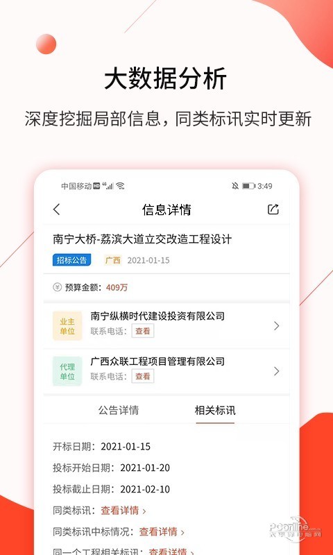 2、行讯宝APP标讯:每天更新100000+的工程行业招投标资讯,提供10000+工程拟建项目信息,给您提供招标信息订阅、标讯数据导出功能、拟建项目获取、招标项目关注等服务.