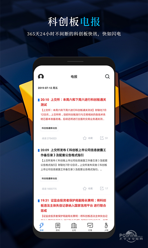 要闻通过头条、研究、专栏三大频道对科创板资讯进行报道和梳理,清晰呈现科创板市场新闻的重要层次,并对科创板重大事件进行连续性、解释性宏观报道.要闻力争帮助科创板投资者一眼看穿市场,为投资者提供原创报道、深度解读、精华推荐和科创板投资线索.