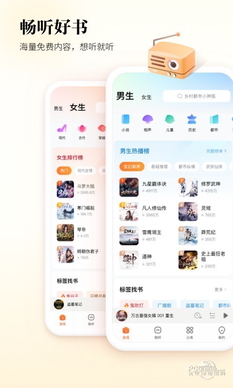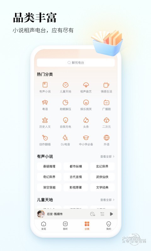 酷狗听书是酷狗音乐旗下听书APP,这里有声小说、广播电台、名家评书、相声小品、助眠解压、历史人文等等,海量音频资源应有尽有,随时随地任你畅听.
