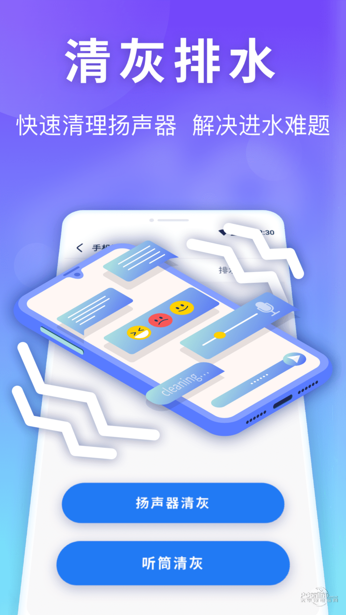 清灰排水:创新型的运用高频震动,排出手机扬声器内灰尘,放大手机音量