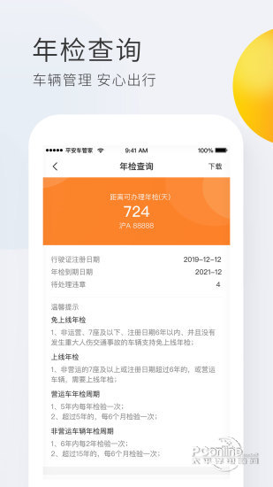 【我的首页】 - 添加爱车,实时查看及提醒车辆违章、年检、保险、在租车辆账单等信息 - 城市定位和城市列表,天气查看,洗车指数【车主服务】 - 享受违章查询、年检查询、保养手册查询等热门服务 - 在平安车管家租车用户的账单实时查询及付款提醒 - 查找附近加油站,充电桩,交警队等【辅助工具】 - 通过人脸识别、实名认证,保障账户安全; - 线上电子签约及征信授权,让租车流程更轻松更便捷【关于我们】 “平安车管家”是平安租赁旗下专业从事汽车租、购、用及后市场服务业务的全资子公司,提供灵活的以租代购金融产品及涵盖用车咨询、维保、理赔、保险等覆盖用车全生命周期的管家服务,打造适合中国市场的“金融+ 运营服务”的创新型汽车消费模式,为个人及企业用户提供一站式用车新体验