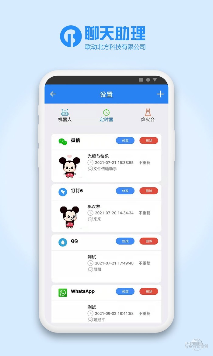 聊天助理启动后,就像人坐在电脑前盯着屏幕一样,不管对象是QQ、钉钉、微信、陌陌还是微博等等,都可以用机器人收发消息;也可以同一时间监控多个聊天工具软件,并在它们之间联动操作,定时发送像生日祝福之类的通知信息,自动转发个人或群消息到非同款其他聊天软件上等等;在这些领域都可以模仿和代替人工,减少人员相当的重复劳动工作量.使用中,所见即所得、即插即用,可以个性化定制和二次开发.