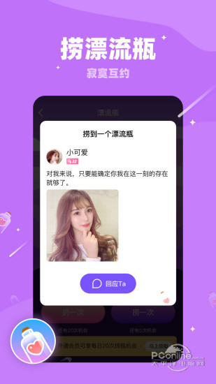 对聊是一款高效交友的手机app,里面有很多主动的异性,你可以在这里更快速地找寻到附近异性,看到喜欢的她,快手出击、在线视频拉近彼此陌声的距离,快速地找到你心目中的她。软件还有更多特点:【视频爱】同城单身男女自动匹配视频,99%接通率,让附近约会更轻松、更简单! 【同城约】附近好友一览无余,她可能就在你隔壁哦!【方便聊】不用加好友,就能在线约会交友找对象!【漂流瓶】寂陌陌生人在线寻爱,捞取你的专属瓶子,放肆个性在线热聊,大胆约会!【送礼物】酷炫礼物一经送出,瞬间打动Ta,不要轻易同意对方约见面哦!