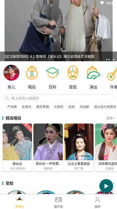 2、1000多张与黄梅戏有关的美图,包括艺术家表演的剧照和生活照。在粉丝风格栏目,可以上传粉丝与著名歌剧家合影,与大家讨论。