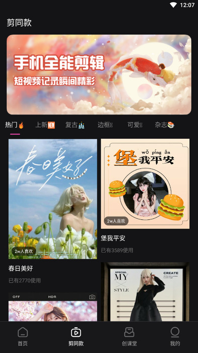 2.【课堂】软件支持用户在线学习vlog剪辑和视频剪辑,从小白到拍摄达人。