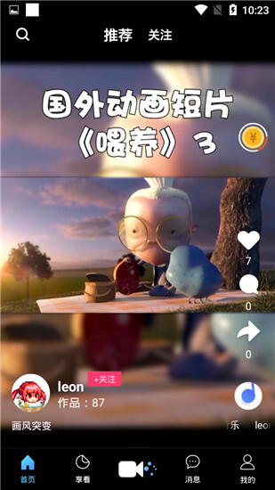 2、视频分享,快速向平台发布自己的视频,收获更多粉丝。