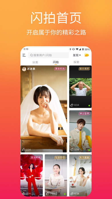 3、各种流行短视频,滑动在线观看,扩大你的朋友圈,赞美你喜欢的视频。