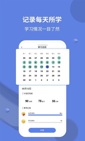 堂堂背单词app亮点1.让用户看到自己的学习成果,查看计划功能。