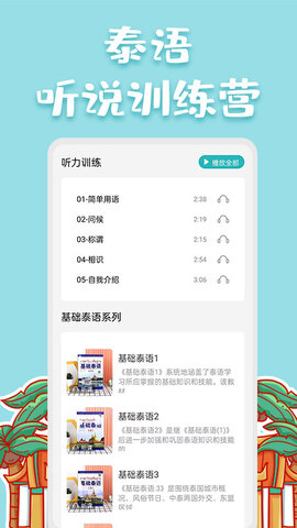 泰语翻译官app功能1.基础泰语:详细的泰语语音全套课程。