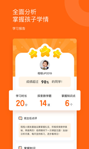 5.学习报告:儿童课堂学习情况一目了然,个性化分析,查漏补缺。