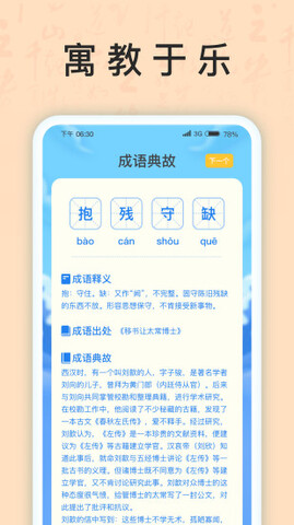 不仅能学习各种成语知识,还能理解成语相关的解读内容,还能更好地帮助用户学习成语。