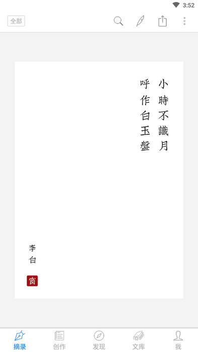 2、名句卡:西窗烛app选择成千上万首诗和名句,以卡片的形式切换和阅读,可以自由制作卡片,简复切换、字体切换。