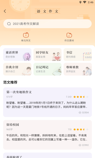 4、分类筛选作文,海量的作文资源可以根据不同的作文类型进行准确的分类。