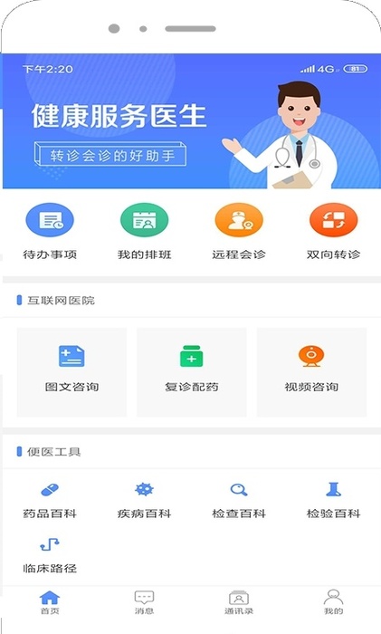 健康服务医生APP亮点1.医生能通过平台及时回复居民咨询,解决居民健康需求;能随时查询健康档案,快速了解居民健康信息,还能在线管理合同居民,随时添加新的居民信息。