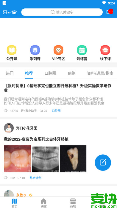 牙e家app是一款为口腔医生提供学习场所和牙医信息的软件,帮助无数牙医通过它,提高了专业知识和技能,在口腔圈建立良性的个人品牌和人脉,牙医或者对口腔科感兴趣的人快来麦块下载吧。