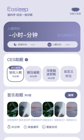 Easleep睡眠工场软件描述1.为用户提供实时、个性化的睡眠辅助解决方案,并在每次睡眠后生成相应的睡眠报告。