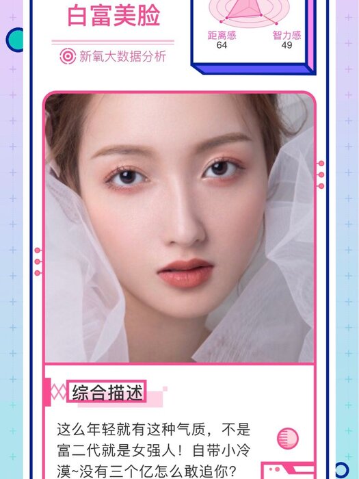 新氧测脸是一款新氧美容微整形专业医美自主开发的AI智能美学面部诊断医美软件,可以准确快速地测量用户的脸型和五官,提供详细的脸型说明解释。新氧测脸app使用方便,只需登录找到新氧魔镜,点击照片即可测试,有很多类型,雍贵脸、幼儿脸、高级脸、网红脸等。新氧测脸app不仅可以快速测试脸的形状,还可以根据脸的形状设计适合的发型哦。更多美容小技巧,是值得一试的美容软件!