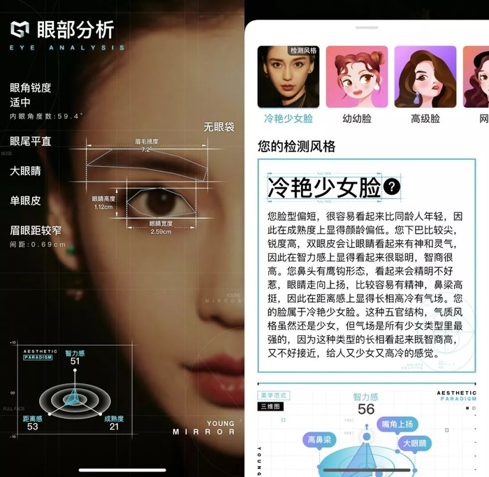 2、想知道你是什么样的脸么?高档脸部,网红脸,富丽堂皇的脸部等,根据不同脸型推荐拍照风格。
