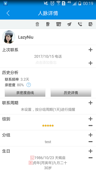 2.智能提醒联系周期时间,让用户及时与手机联系人沟通;